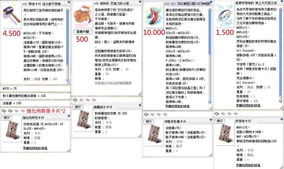 裝備詳情精煉、卡片、附魔請看圖2345