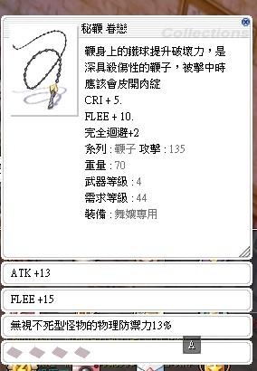 【 秘鞭眷戀】ATK+13 Flee+15 無視不死防禦+13% 舞孃 掛機神器