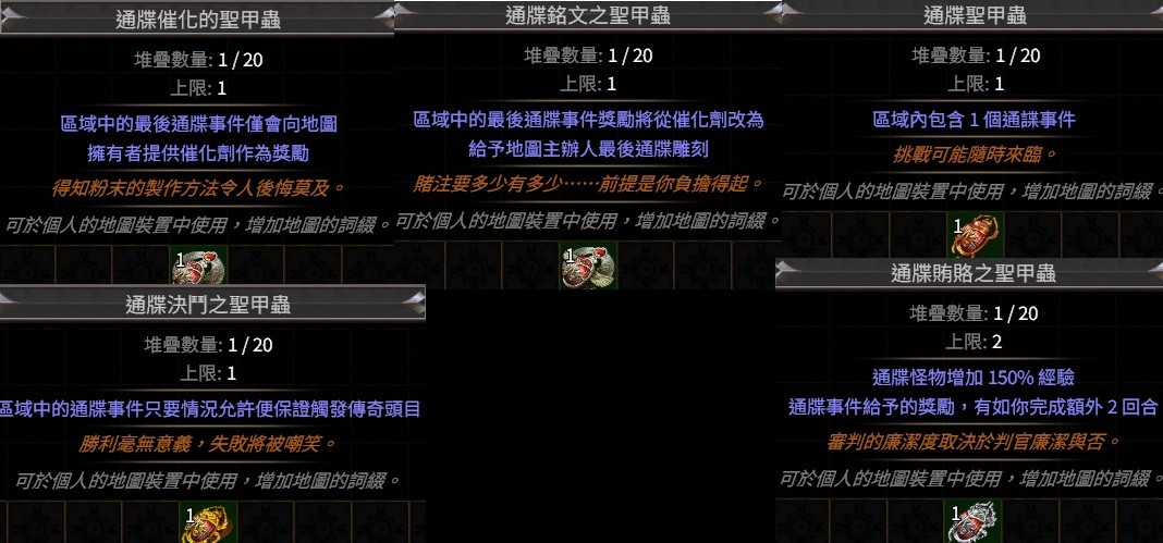 PoE聖甲蟲👌通牒催化、銘文(通牒雕刻)通牒聖甲蟲、決鬥、賄賂(經驗)
