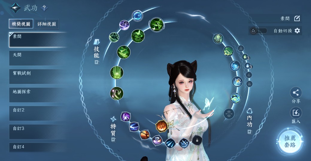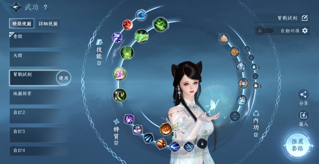 內功:PVE素問(3水3木),PVE天問(3火3金),PVP幫戰(3水3土)