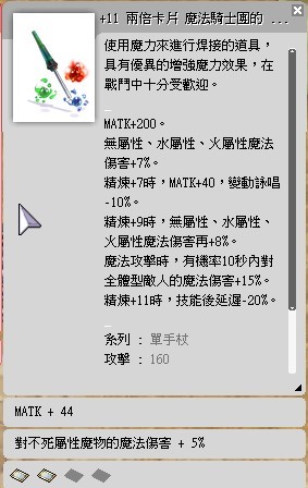 +11焊接魔杖(雙變異白色騎士卡/MATK+44/不死5%)