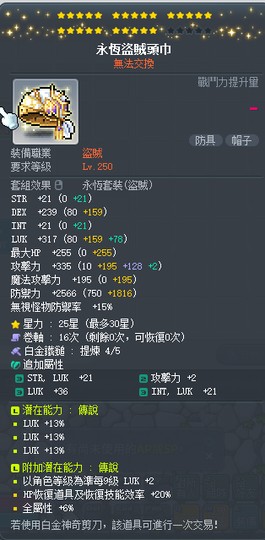 【永恆盜賊頭巾】雙傳25星39%幸永恆盜賊頭巾 附加大雙 白4全v捲~