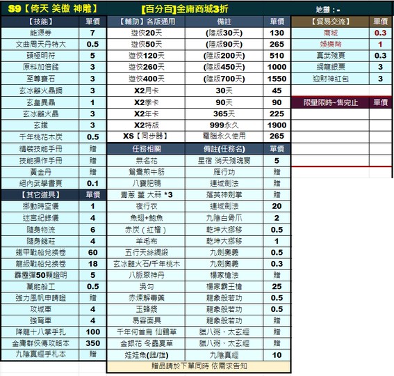 9倚天/笑傲/碧血【百分百】各式道具|遊俠|X2|五甲|悟裝|攻防丹|屬性丹