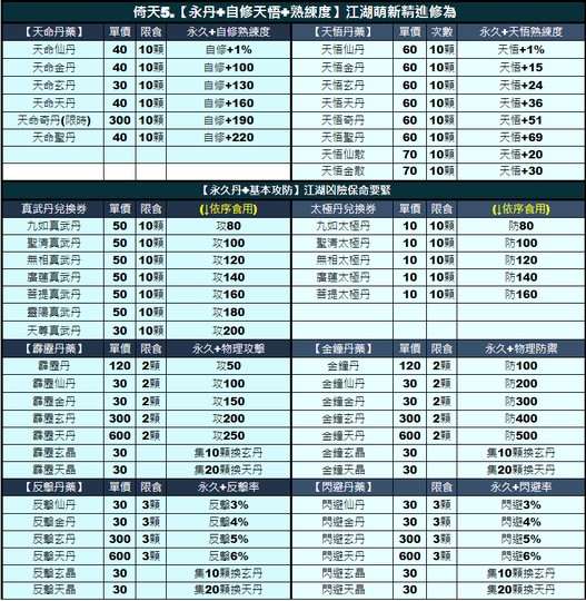 9倚天/笑傲/碧血【百分百】商城3折|五甲|悟裝|攻防丹|屬性丹