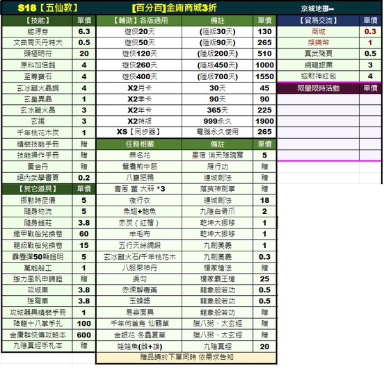 18五仙教【百分百】商城3折|遊俠|X2|自修|屬性|