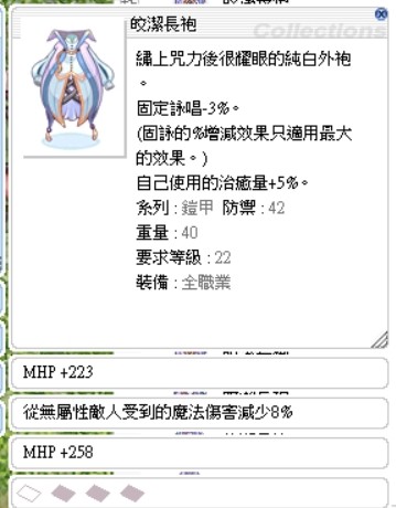 皎潔長袍 HP+481 抗無屬敵人魔傷8%