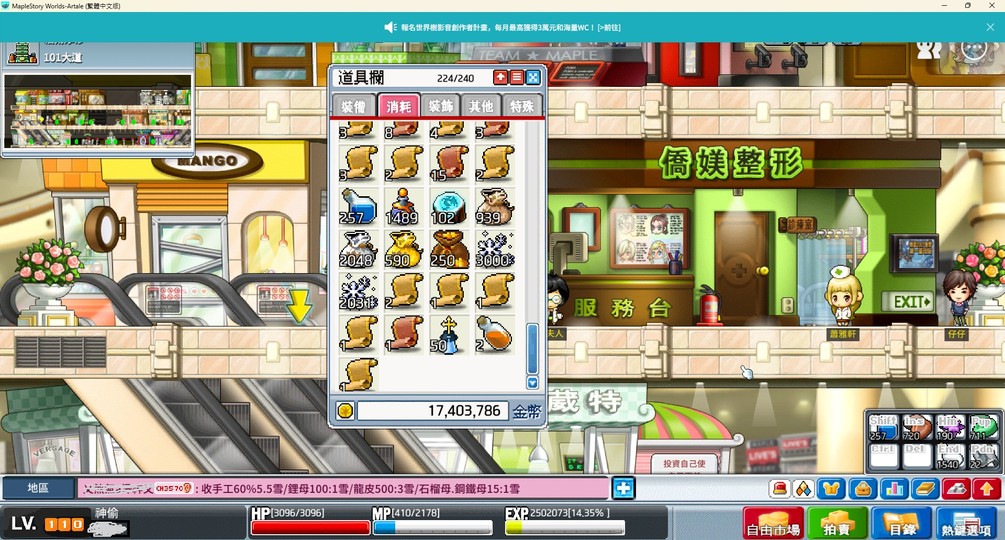 不清倉 想盡量一起賣 祭司有10xxx wc幣 神偷1600wc幣 都有寵物技能123祭司有造型卷身上還有一堆有價裝捲 香菇 等等還有一大堆錢袋