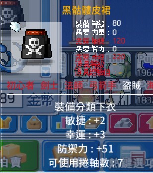 【80盜賊下衣5屬】2敏捷 3幸運 乾淨未衝