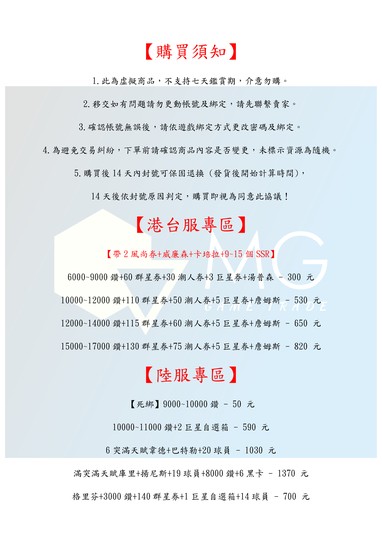 【初始號】【MG數碼】 港台服 陸服 多石號 多鑽石號 初始號 自抽號 自選號 自選組合