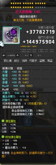 【巨大的恐怖】25星 39%幸 附加86幸 白5 巨大的恐怖 售價:19000(實收)