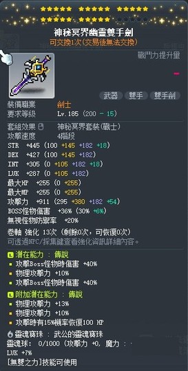【神秘冥界幽靈雙手劍】25星 武公 80%BOSS+10%物攻 究極 雙傳 23%物攻 雙S