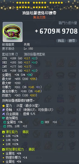 【頂級培羅德烙印腰帶】25星白5全B 36幸附加傳說大雙 可直下
