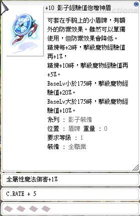 +10 影子經驗值倍增神盾 ( C.RATE+5 )