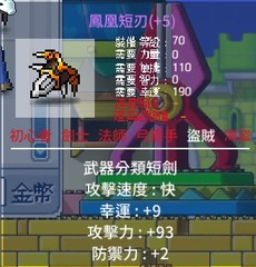 【70等刀賊武器】【9幸93攻擊】【鳳凰短刃】【盜賊刀賊頂武器】【稀有93攻】【此單可以直接購買】