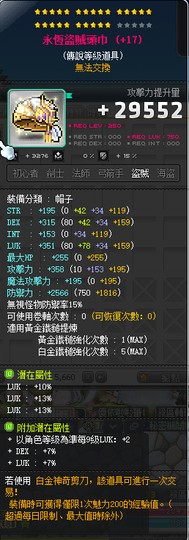 【永恆盜賊頭巾】雙傳25星36%幸永恆盜賊頭巾 附加大雙 白5全b~