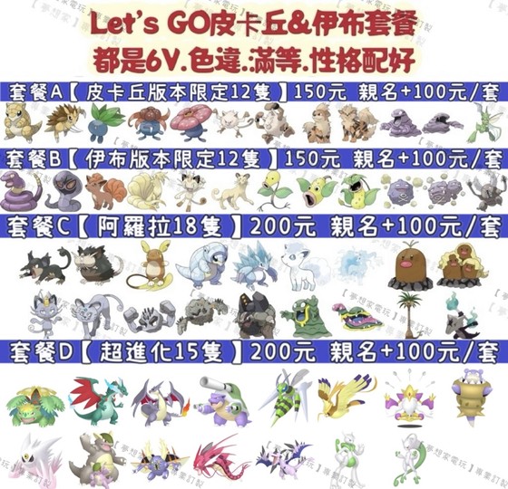 💎套餐區都是6V.異色.滿等.性格配好,需要更換成原色的話,要提前告知