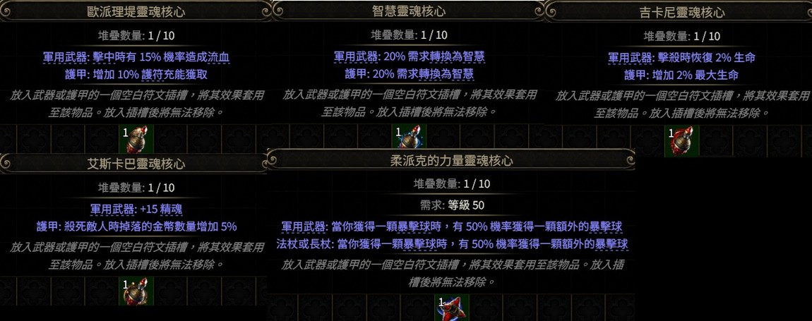『 靈魂核心 』『 地圖碑牌 』『 傳奇珠寶 』『 魔符插槽 』