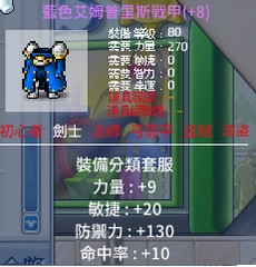【普里斯戰甲】39屬劍士套服(9力20敏10命中)
