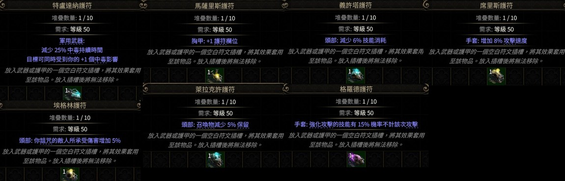 護符👌武器胸甲頭部→特盧達納(中毒)馬薩里斯(護符+1欄位)義許塔減少技能消耗