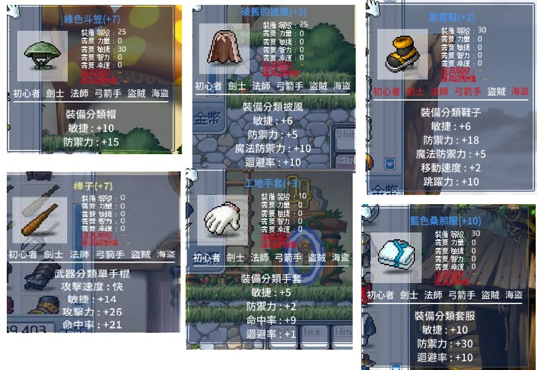 【卡敏裝6件套共卡51敏】卡敏棒14敏 破舊披風6敏 斗笠10敏 手套5敏 鞋子6敏 套服10敏