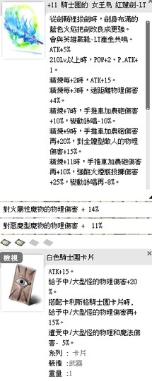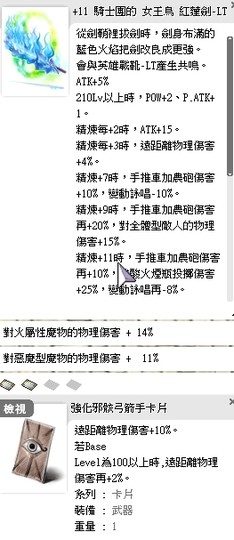 +11 2S 紅蓮劍LT 對火屬性物理傷害14%/對惡魔種族物理傷害11% 強化邪骸弓箭手卡片/白色騎士團卡片
