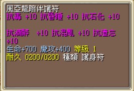 【空龍護符、辟邪蘿蔔、鞋、約戒、鬥戒、天水風亞護符】