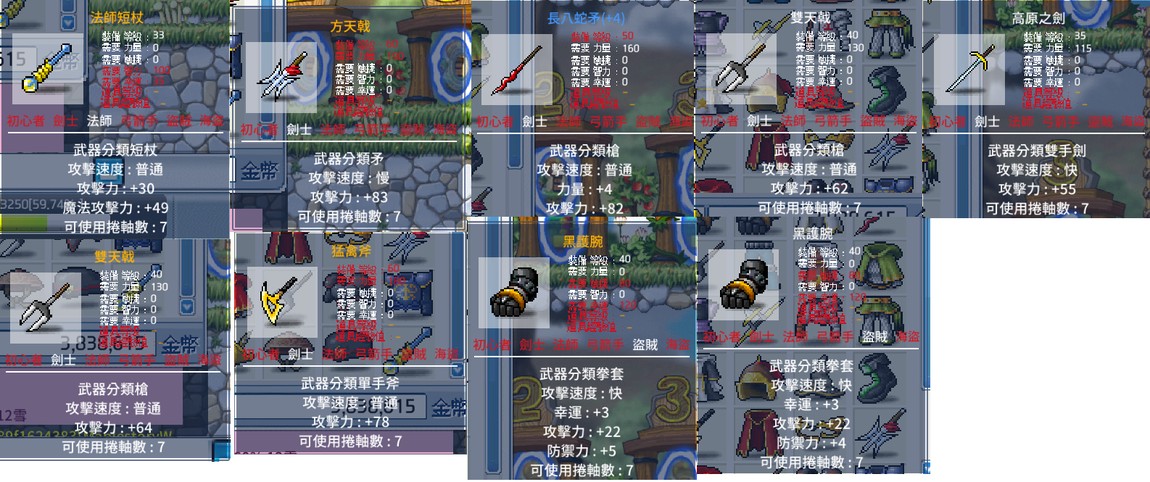 【各式橘字裝備】紅色鞭子球棒/伊卡路斯/雙天長八高原/35等/40等/50等/60等/70等裝備