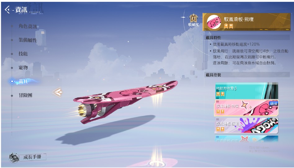 闇強目前255 該有的東西都有 累儲積分7萬 武器18質變六上19 後續可能會比較歐 勳記用金色魔女三階 手套金魔棋1 其餘各都是紅色三階 寵物部分都有 一拳龍捲那些連動的都有 四維屬性 魔攻 爆率 爆傷 屬強都高 所以傷害也高 時裝 泳衣跟天空套的都有 目前只差三件上15 就能開始把武器強化到20 小號蝶影武器上15質變2 有穿一些 粉勳記 迴路 裝備 那些也用了8分 大號加上5隻角色都有開通 通行證 目前7隻角色60級