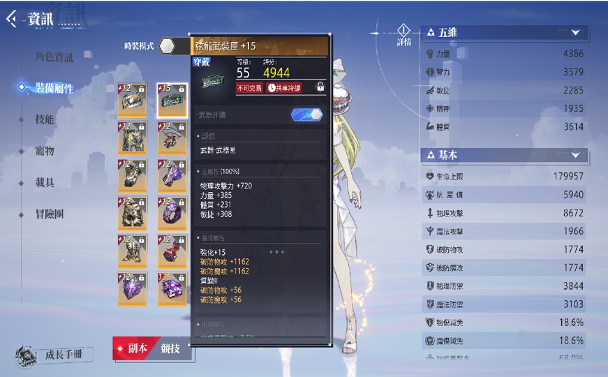 8/24 新增亞古獸 迪路獸2階 保底104抽 武器升60級 破防魔攻4600 爆率87.6% 爆傷180% 8/25更褲子衣服上15 剩項鍊未上15 諜影裝備全都有 有三件在小號身上慢慢轉 8/27 王騎頭強化+16 8/29 王騎已有三件套 項鍊升140 共鳴170 武器質變1