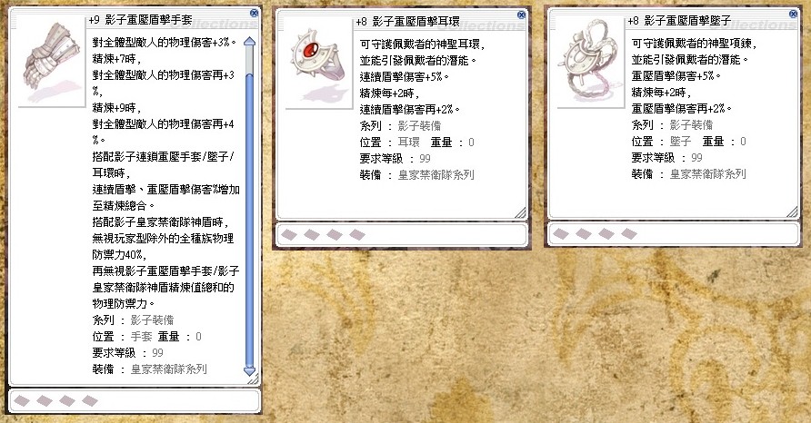 影子重壓盾擊套[+9手套、+8耳環、+8墜子][皇家]