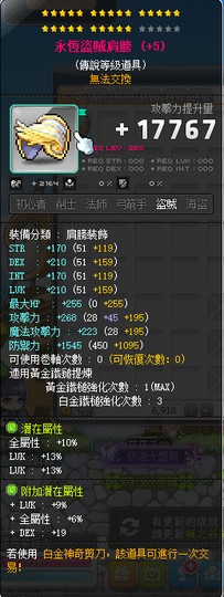 【永恆盜賊肩膀】雙傳25星36%幸永恆盜賊肩膀 附加96幸大雙 白3全b~