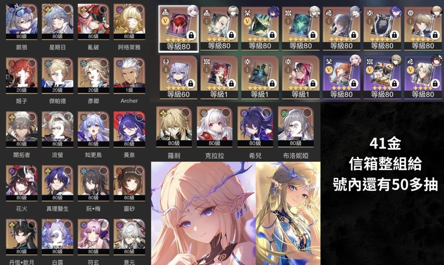 【男、70等、30金角、11金專】41金 多抽數 流螢2+1