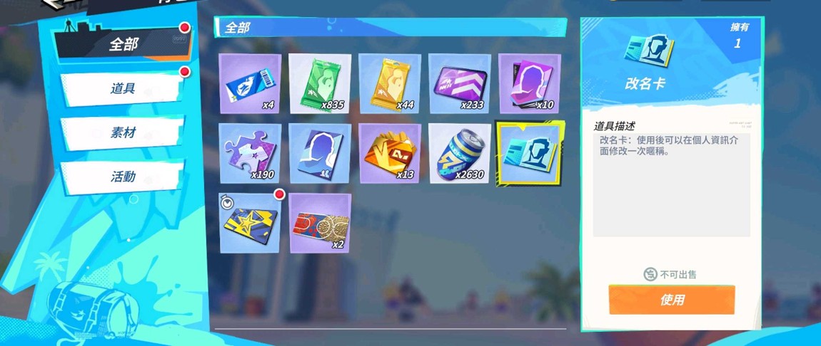 物品種類: 帳號