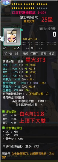 素質如圖,暫時絕版的25星小資成品裝,主附加潛能、星力、卷軸均攻、星火都洗好的口紅,買回去直接穿不用再動任何東西。