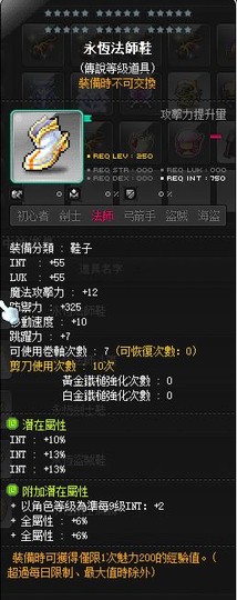 【永恆法師鞋】永恆法師鞋(主潛36%智力 / 附加傳說三排+2等級智+6%全+6%全)