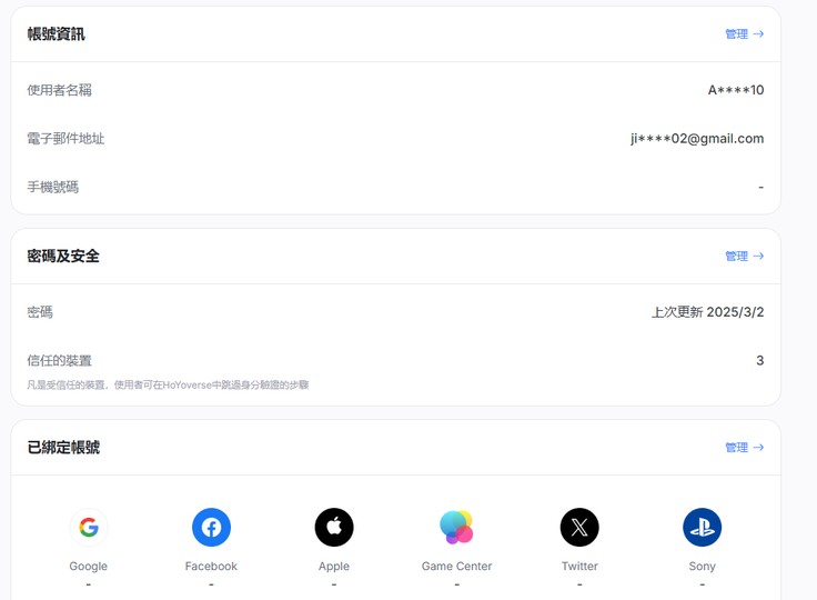 物品種類: 帳號