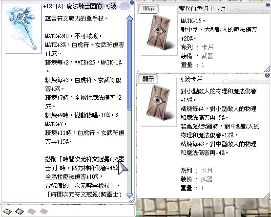 武器 +12 A階 次元契靈權杖(白虎/玄武) 可波卡+變異白色騎士團卡