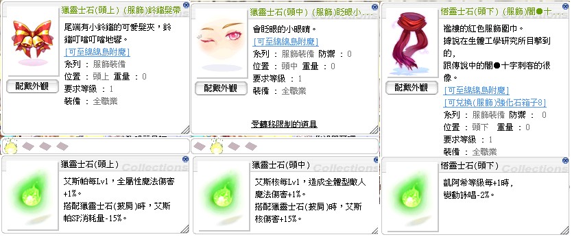 全套裝備保留頭中、頭下、飾品部位供買家自行添購