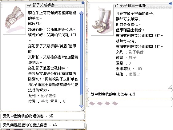 戰靴 +9 影子獵靈士戰靴 (附魔:中型魔法傷害+5%)