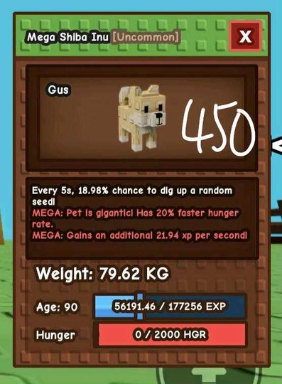 巨大+Mega柴犬59歲(54.94kg) | 400元 |