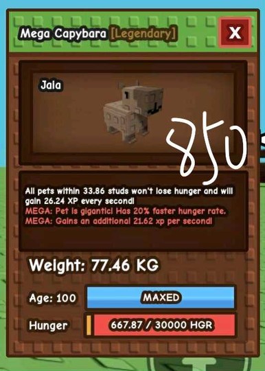 巨大+Mega卡皮巴拉(77.46kg) | 700元 |
