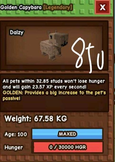 巨大黃金卡皮巴拉(67.56kg) | 700元 |