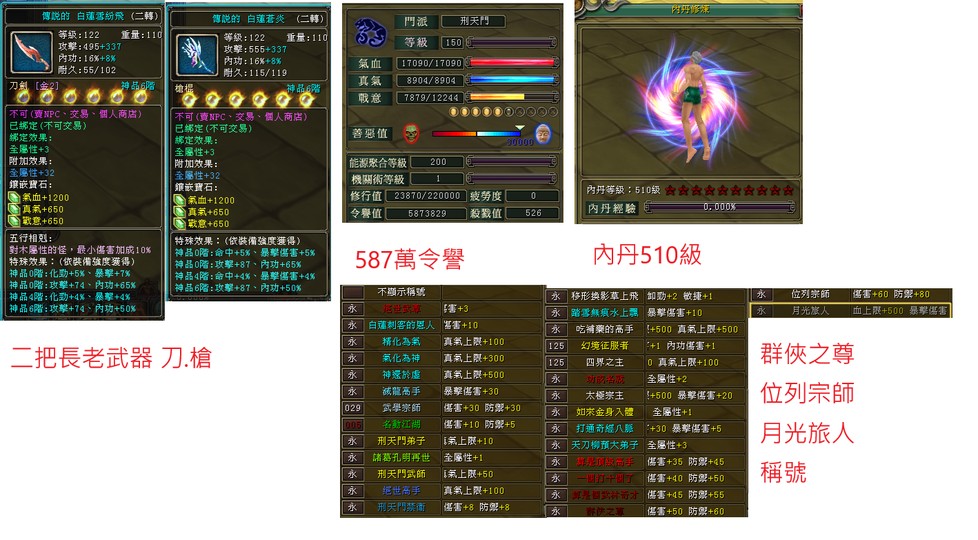 150刑天空帳~二把長老武器 587萬令譽 月光旅人 傳說武學黑衣皆有吃~L