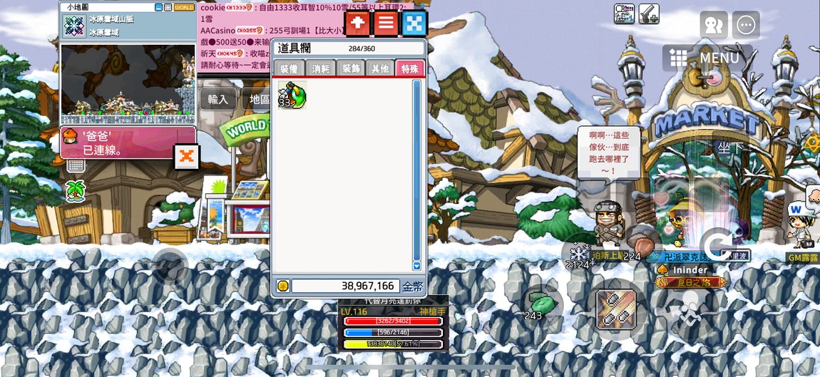 【123等、神槍手_槍神】裝備十力速披、海賊王帽子(100%頭敏+7)、9敏紫雪鞋、85ad+3敏