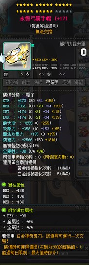 【永恆弓箭手帽】25星白5全B 主39%附加966 共60%敏 星火78+3% 雙傳 永恆成裝