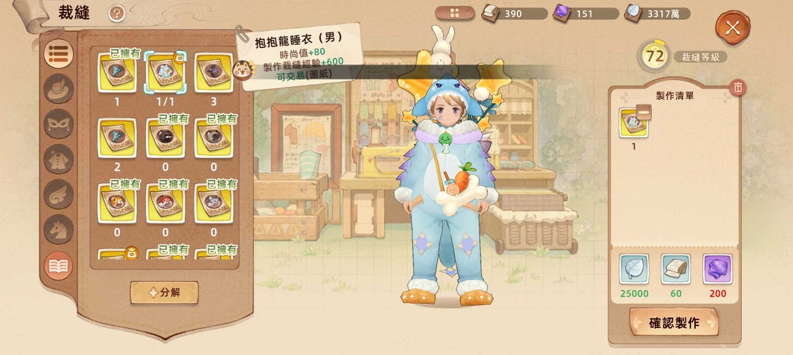 晨曦海港-抱抱龍睡衣圖紙(男)
