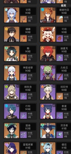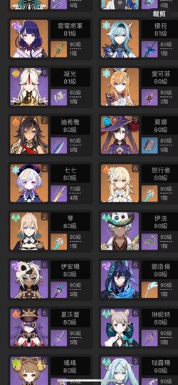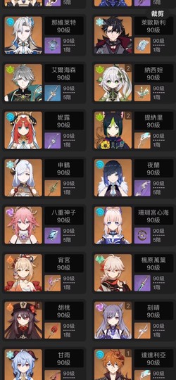 【女、60等、1金角、1金武】亞服成品號 90金 2+1仆人 2+1恰斯卡 2+1納西妲 1+1千織探索都滿了