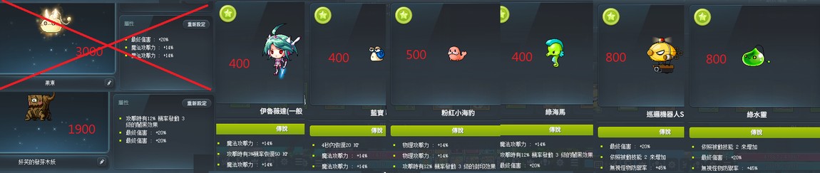 雙終1800 雙魔400 雙物500 終魔400 終被無800