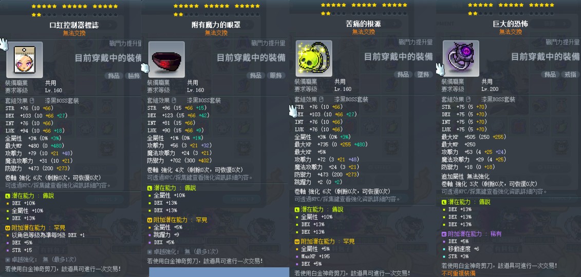 頂培 憤怒 漆黑 魔性 掉寶200%+楓幣100% 一套七件 6500 不拆