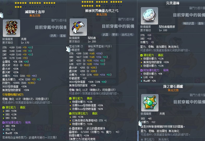 滅龍1700 古代之弓5500(武公) 完美遺跡 900 綠之寶石 300